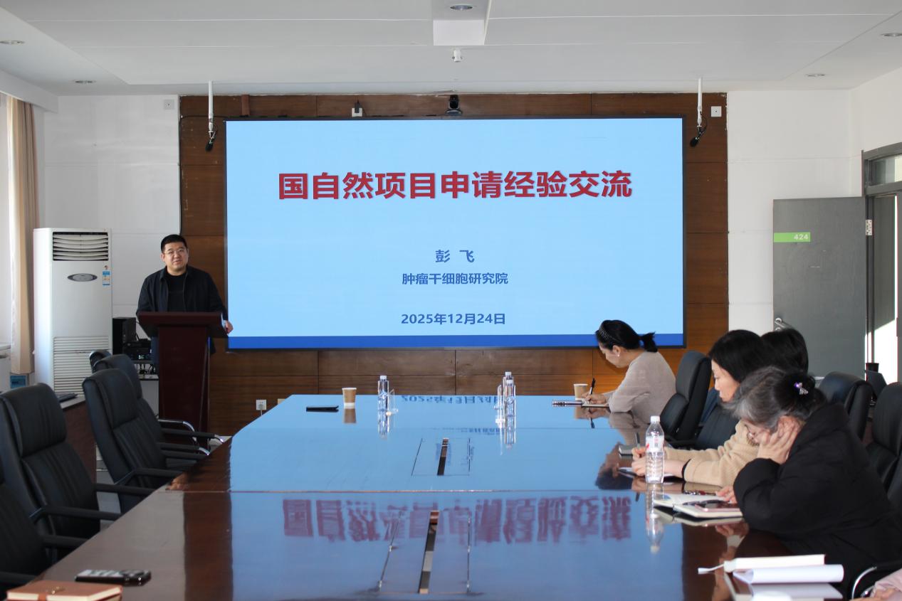 12月24日下午,beat365官方网站中文特邀学校肿瘤干细胞研究院副院长彭飞教授莅临学院,开展国家自然科学基金项目申报经验交流学术活动。beat365官方网站中文60余名师生参会,活动由副院长(主持工作)陈欣主持。
