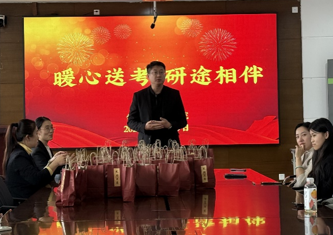 2025年全国硕士研究生招生考试在即,在备考的最后冲刺阶段,为帮助考研学子们舒缓备考压力,增强迎考信心,加强诚信教育,以饱满的精神状态迎接考试,beat365官方网站中文于12月19日下午在学院楼424会议室举办“暖心送考,研途相伴”考研慰问活动暨研究生考试法治及诚信教育大会,为考研学子送上最真挚的祝福与支持,助力他们踏上梦想的征程。beat365官方网站中文班子成员、两位辅导员老师及全体考研学生参加了本次活动。