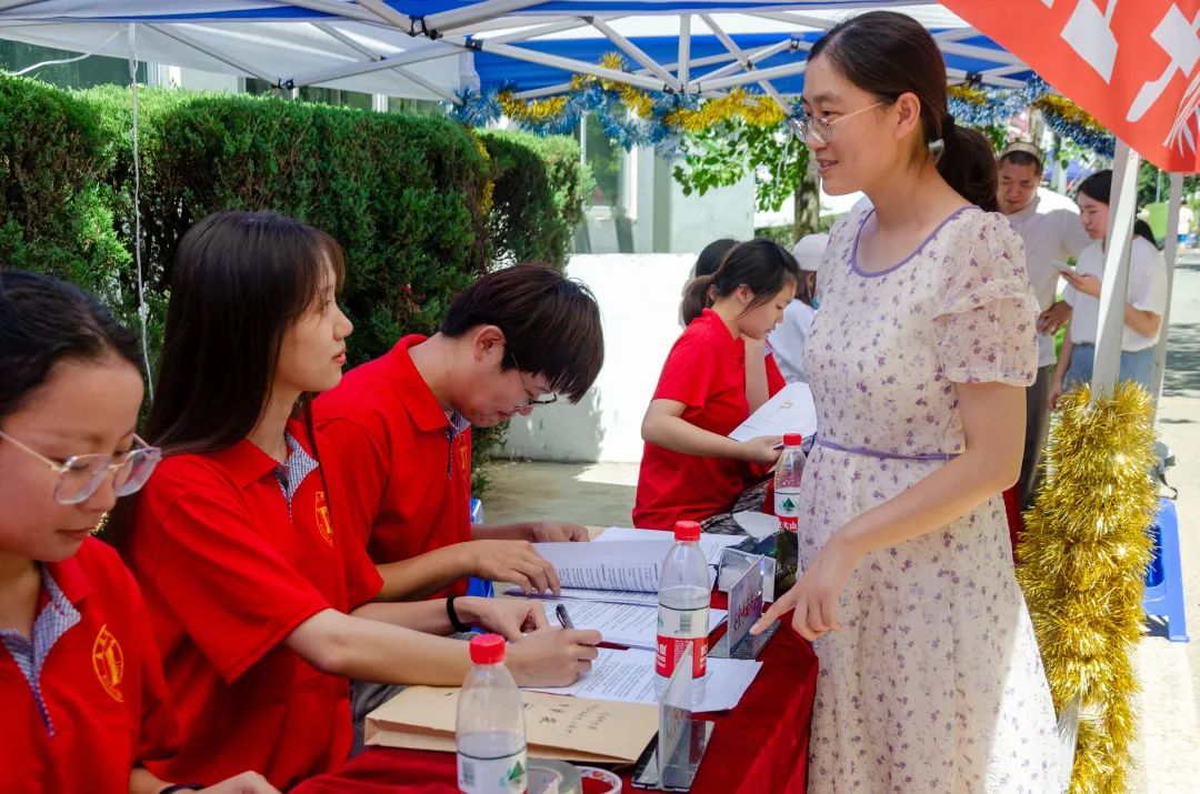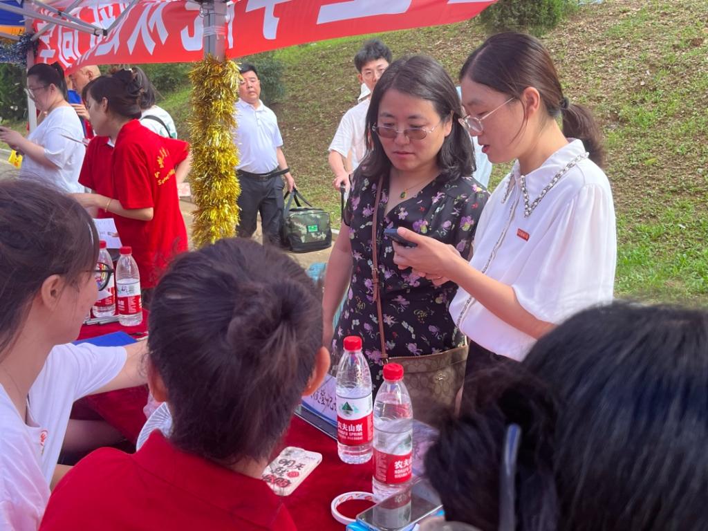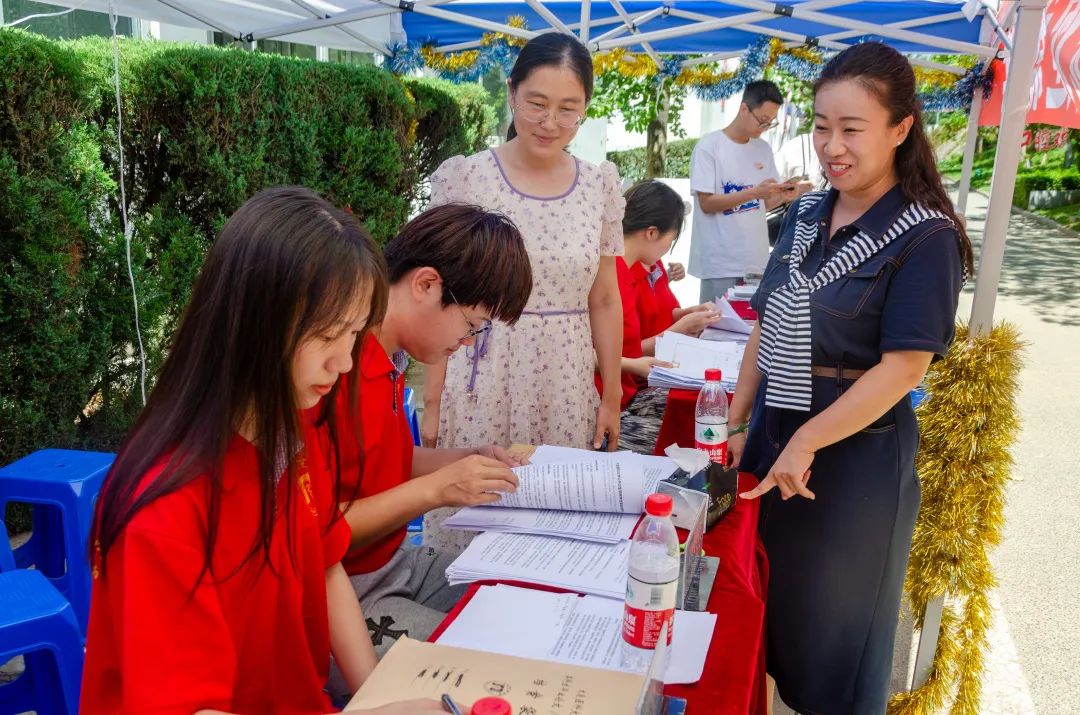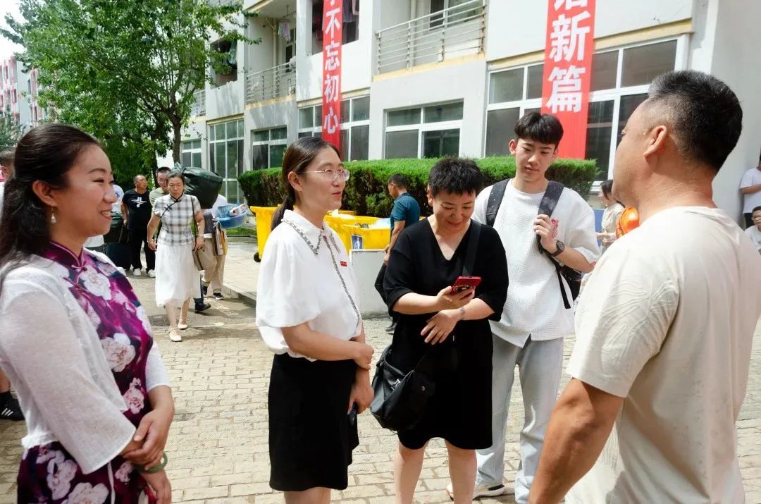 与报到的2023级新生亲切交流