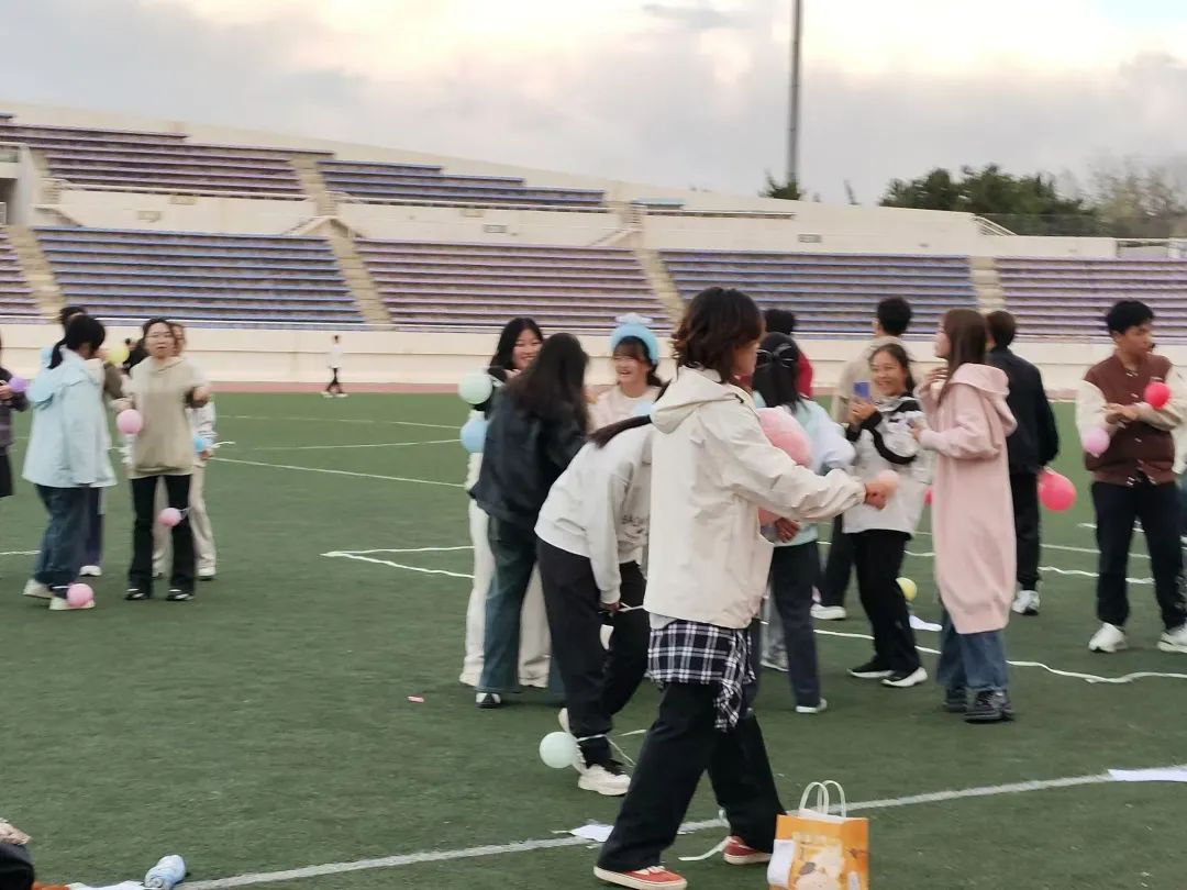 “气球大作战”是最后的收官游戏,同学们取消队制,每人两个气球,在操场上自由奔跑,捏爆别人的气球,同时保护好自己的气球。大家或组团“进攻”、或单人防守,在欢笑声中尽情释放初次步入大学的焦虑和胆怯。该游戏为本次嘉年华中自由度最高的大型游戏,同时取消计分制的规定也使同学们能够放开顾虑,尽情奔跑,在秋天里收获崭新的心情。
