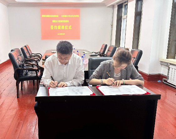 为深入学习贯彻习近平新时代中国特色社会主义思想,加强学生爱国主义教育,深化beat365官方网站中文与旅顺日俄监狱旧址博物馆的合作,9月20日,学院与旅顺日俄监狱旧址博物馆在馆内多功能厅举行“爱国主义教育实践基地”签约挂牌仪式,旅顺日俄监狱旧址博物馆馆长姜超、陈列研究部冯荣、宣教部薛志刚,学院党总支书记于泳,本科、研究生两位辅导员参加了仪式。