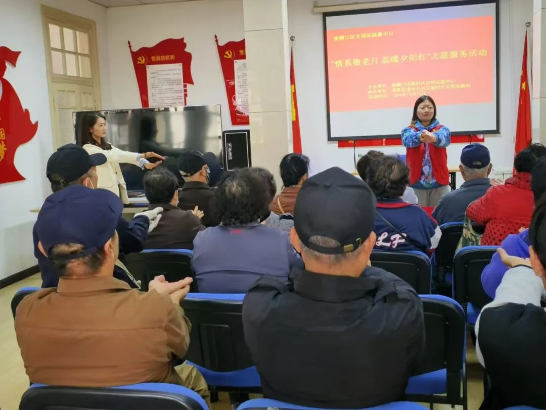 为了进一步宣传适合老人的健康饮食习惯,促进中老年人身体健康,围绕老年人平衡膳食、营养保健,结合实例,学院王宁宁老师开展了一场生动活泼的健康知识大讲堂,为老年朋友科普了大量关于一日三餐合理搭配、吃动平衡的健康知识。王宁宁老师还通过现场答疑的形式,与受众形成积极互动,并推荐大家关注中国营养学会的科普宣教,倡导大家平时从正规渠道收听收看健康知识。讲座结束后,在入党积极分子战庆越同学的带领下,老人们伸出双手,一起完成轻松有趣的手指操。