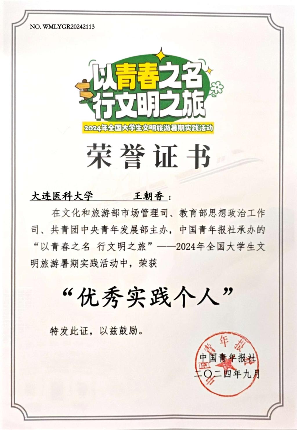 beat365官方网站中文多名师生在“以青春之名 行文明之旅”——2024年全国大学生文明旅游暑期实践活动中荣获“优秀指导老师”、“优秀组织者”、“优秀实践个人”称号。