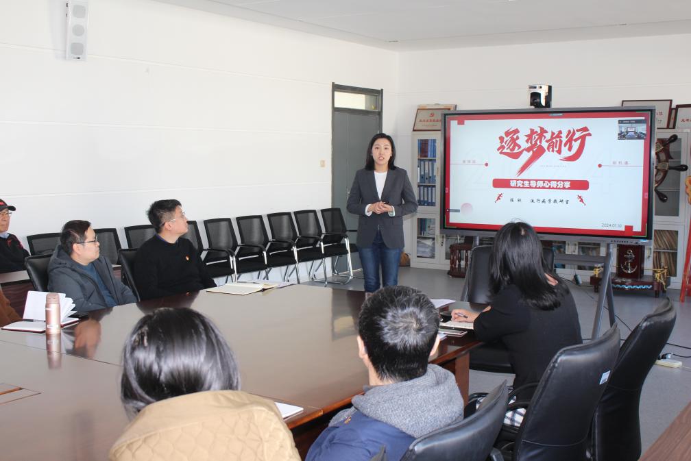 研究生辅导员石伟涛就研究生日常请假管理、奖助学金评定、就业管理等制度做了详细解读;科研与研究生办公室邱天明就导师管理、学生培养进行详细梳理,并着重强调科研诚信的管理和要求;副教授陈欣结合自身教学、科研和育人经验,以《逐梦前行》为题,从培养目标、科研规范、文稿规范、组会制度规范、社会实践、心得体会六个方面进行精彩分享。