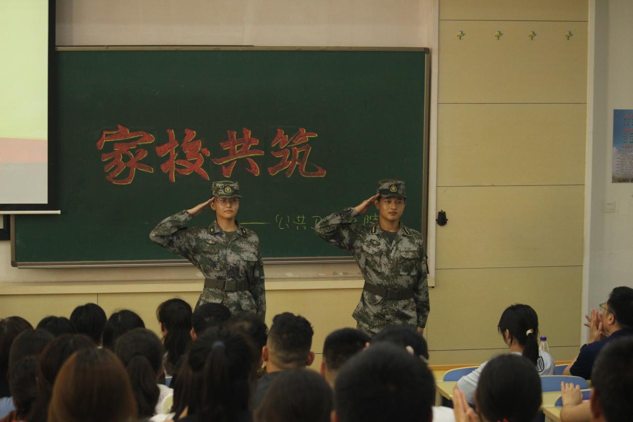 会议第四项议程为军训教官见面会。在学生教官见面仪式上,两位军训教官王留宝和许墨轩分别进行了自我介绍,鼓励全体新生在接下来的军训过程中以昂扬向上的姿态面对此次军训,遵守纪律,团结协作,并期待新生取得优异成绩。