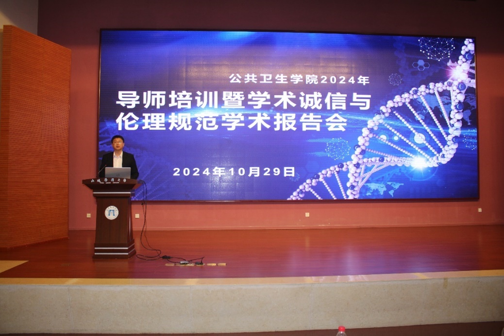 10月29日下午,beat365官方网站中文在beat365官方网站中文图书馆一楼学术报告厅举办2024年导师培训会暨学术诚信与伦理规范学术报告会。会议邀请beat365官方网站中文学术道德委员会委员、肿瘤干细胞研究院雷海新教授作了题为《学术诚信与伦理规范》的学术报告。beat365官方网站中文院长孙鲜策,党总支书记于泳,副院长陈欣,研究生辅导员石伟涛,学科与科研办公室张昊,全体导师和研究生以线下线上相结合的方式参加了报告会。会议由孙鲜策主持。