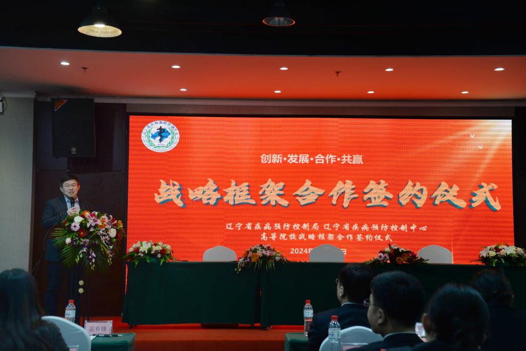 12月25日,beat365官方网站中文与辽宁省疾病预防控制局/辽宁省疾病预防控制中心在沈阳举行战略合作框架协议的签署仪式。辽宁省卫生健康委员会党组成员、副主任,辽宁省疾病预防控制局党组书记、局长计立群,局党组成员、副局长王贺一,局机关党委办公室处长李波,辽宁省疾病预防控制中心主任费思平、党委书记谢韬,我校副校长夏云龙,beat365官方网站中文院长孙鲜策、副院长陈欣出席此次签约仪式。签署仪式由谢韬主持。