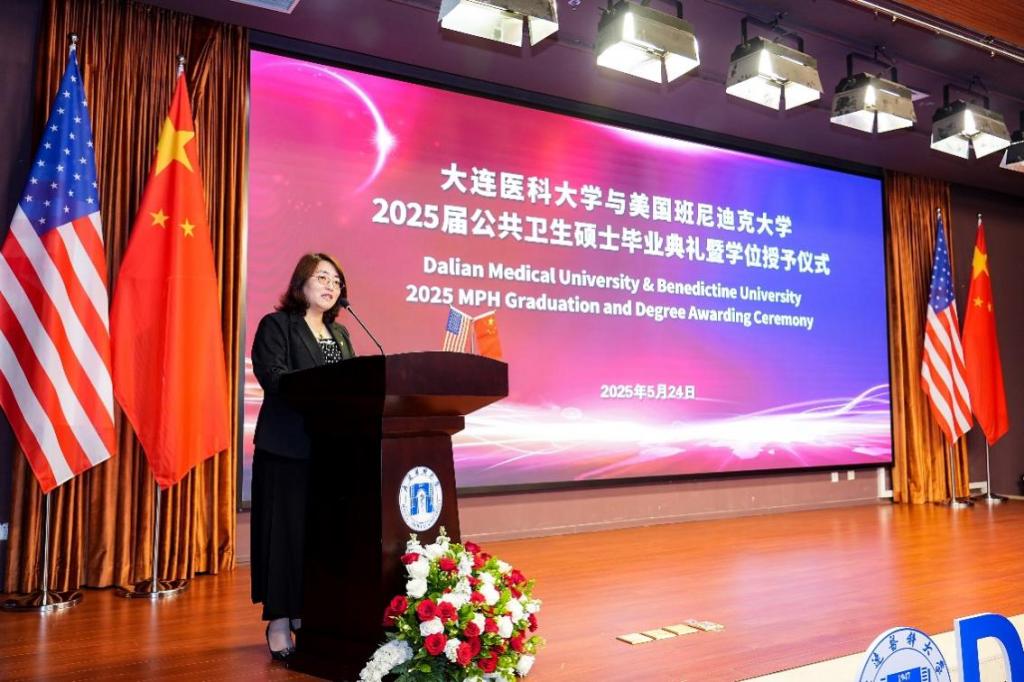 5月24日,我校与美国班尼迪克大学2025届公共卫生硕士毕业典礼暨学位授予仪式隆重举行。经过两年的辛勤学习,78名毕业生顺利获得美国班尼迪克大学硕士学位。美国班尼迪克大学校长Joseph J. Foy博士亲赴我校参加毕业典礼。我校副校长邵淑娟、beat365官方网站中文院长孙鲜策、国际教育学院副院长高鹏、beat365官方网站中文副院长陈欣、中美合作MPH项目的授课教师、教学督导代表和毕业生等共同出席本次典礼。典礼由孙鲜策主持。