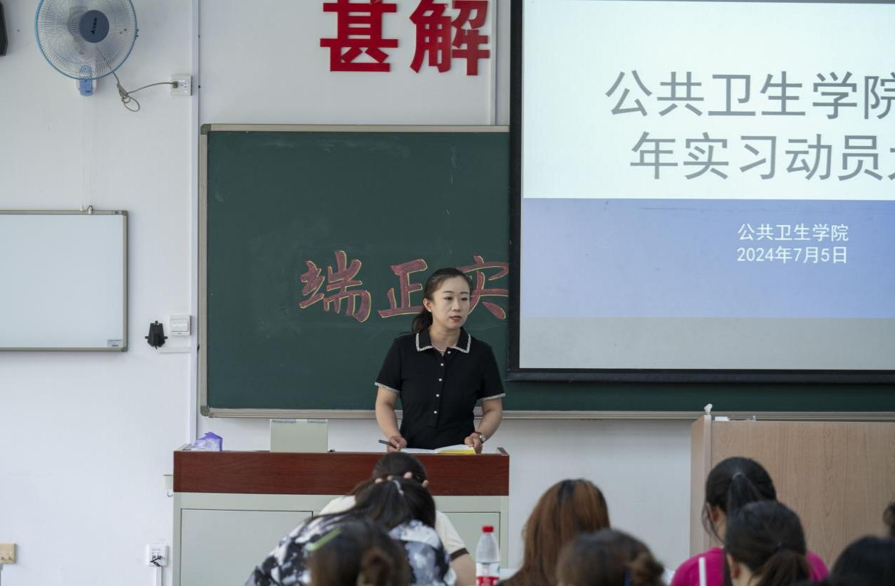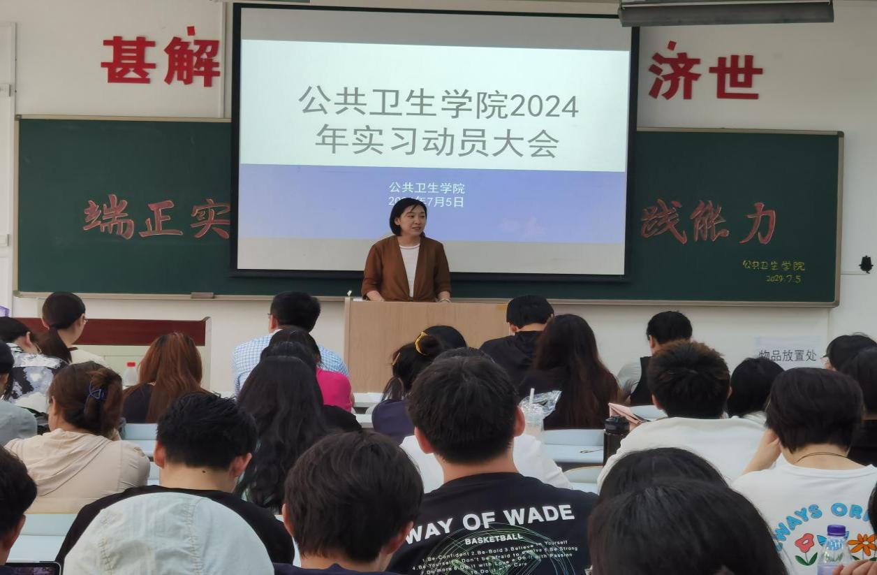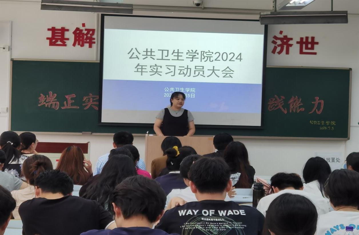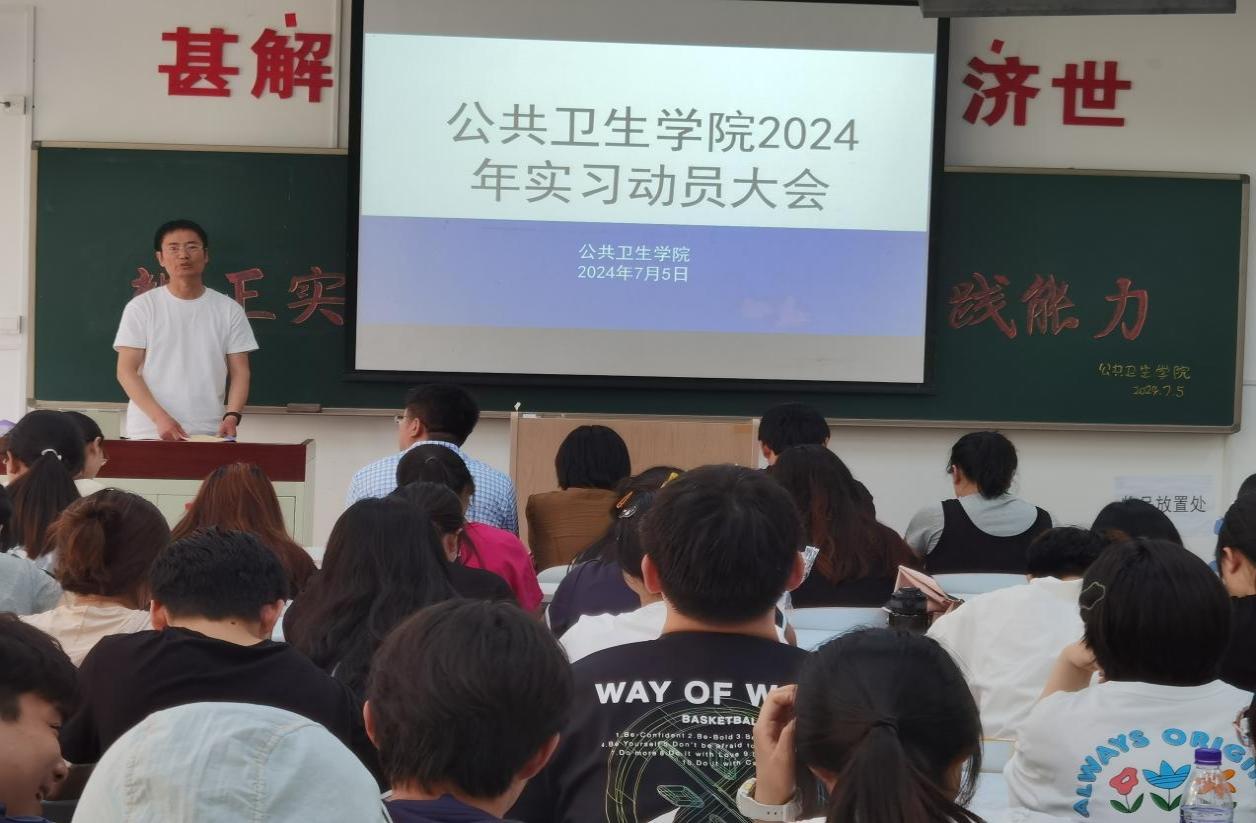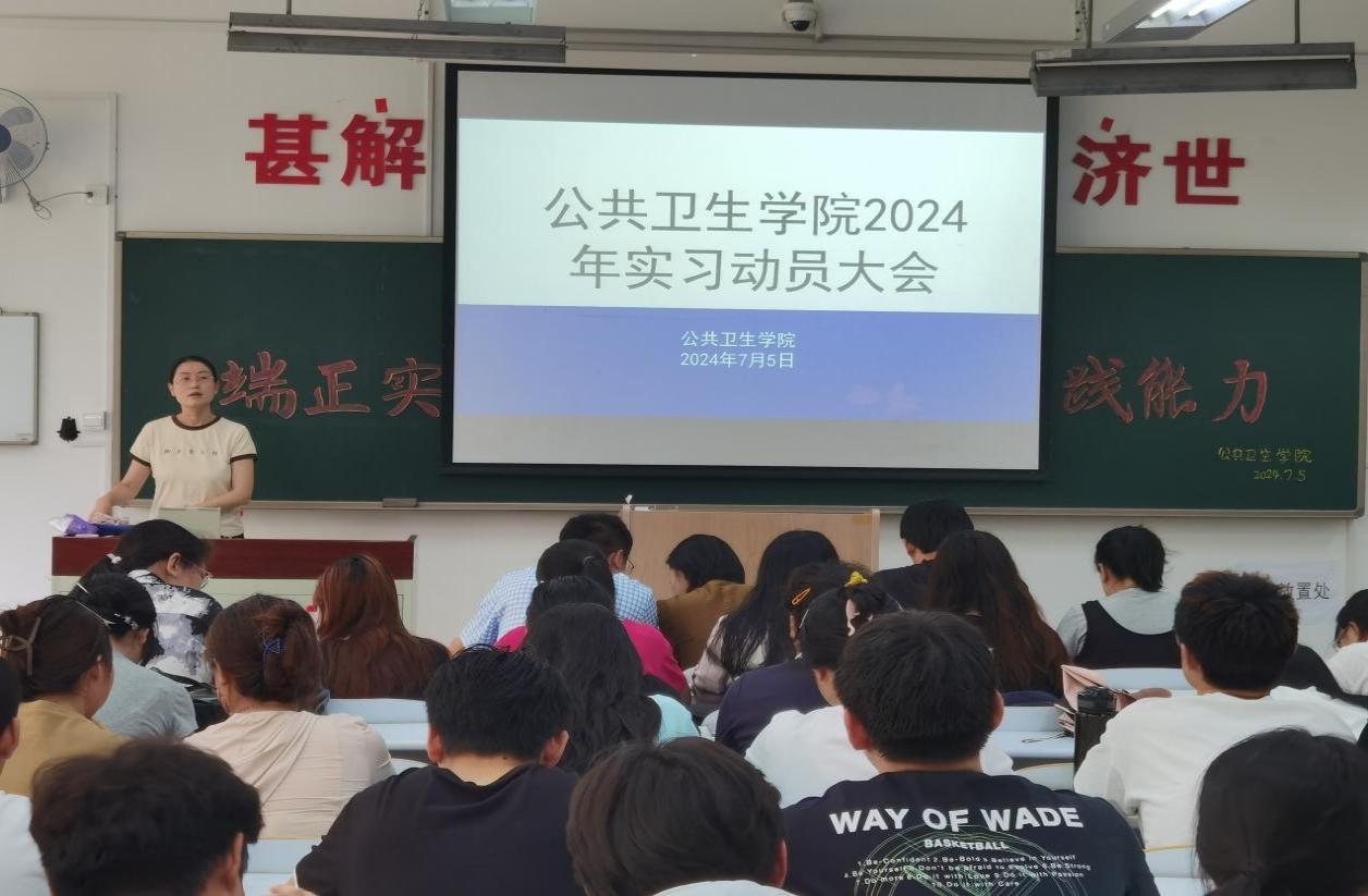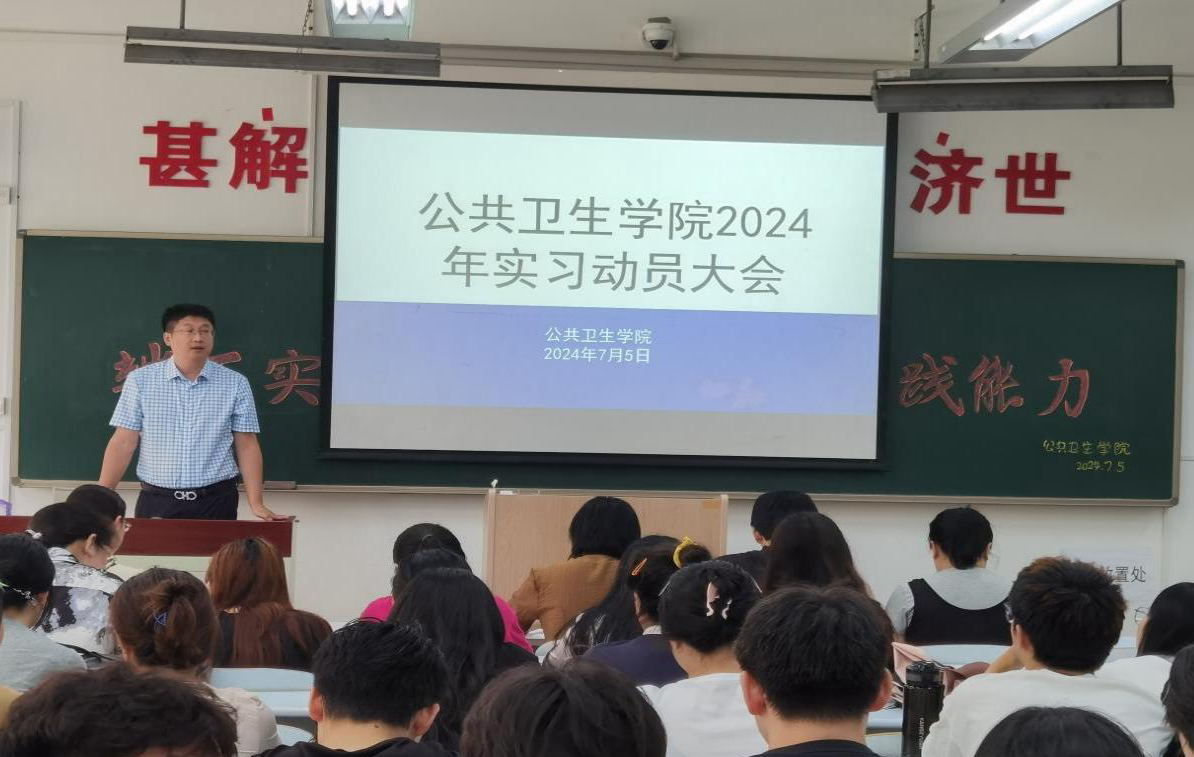为确保学院学生实习工作的顺利开展,帮助学生尽快熟悉实习安排,以良好精神面貌投入实习,beat365官方网站中文于7月5日在D110教室召开了2024年实习动员大会。学院党总支书记于泳、副院长陈欣、白洁老师、王洪伟老师、李景山老师、两位辅导员老师以及20、21级预防医学专业全体学生参加了此次大会。