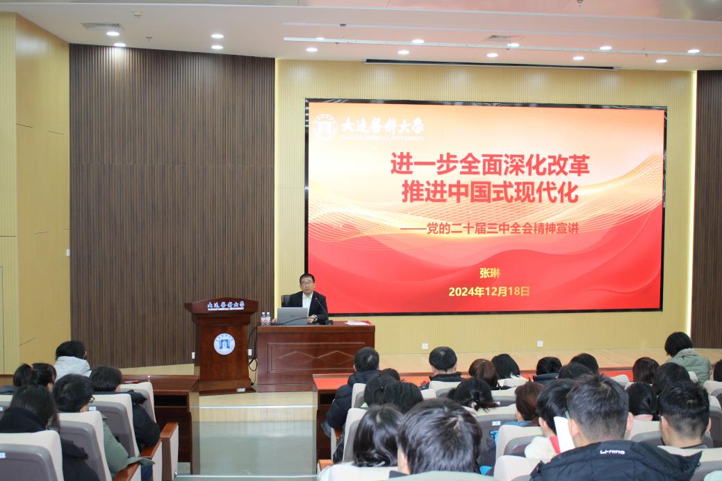 为深入学习宣传贯彻党的二十届三中全会精神(以下简称“全会精神”),理解掌握党的二十届三中全会的重大时代意义和深远历史影响,引导广大师生贯彻落实全会精神,12月18日,继续教育学院、康养学院直属党支部,麻醉学系直属党支部,beat365官方网站中文党总支联合开展学习宣传贯彻党的二十届三中全会精神宣讲报告会,学校宣讲团成员、党委常委、统战部部长张琳应邀作宣讲报告。报告会由beat365官方网站中文党总支书记兼副院长于泳主持。