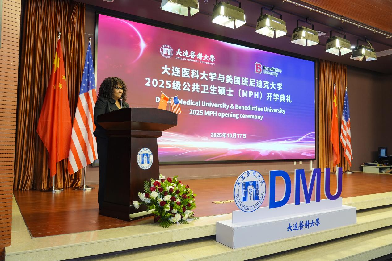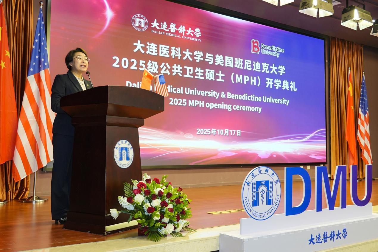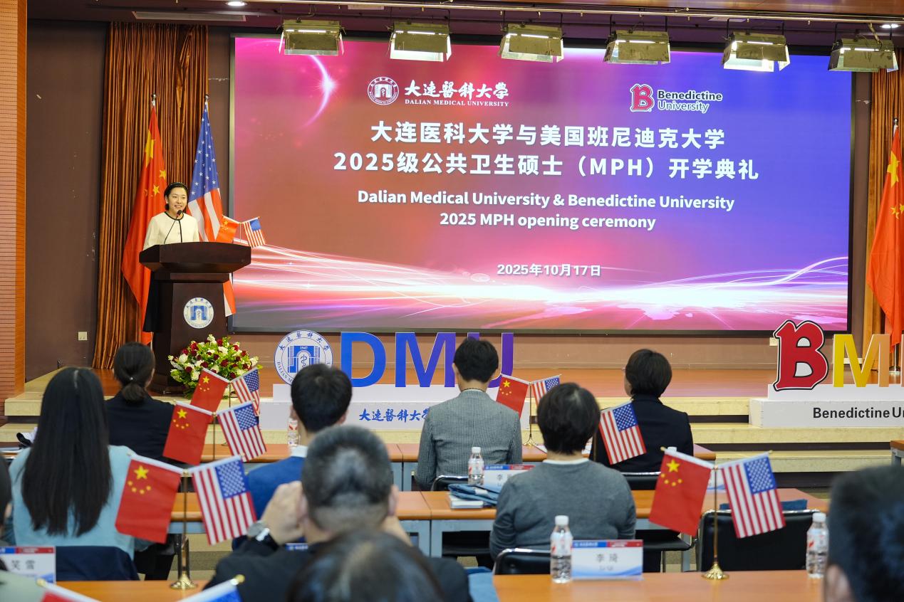 杨晓丽首先向全体新生表示最热烈的欢迎和最诚挚的祝贺。她表示,beat365官方网站中文与美国班尼迪克大学合作举办的公共卫生硕士学位教育项目,已有12年的光辉历史。12年来,中美合作MPH项目所培养出的众多具备国际视野与前沿知识的公共卫生人才,已如涓流汇海,不仅为辽宁省、更为中国乃至全世界的公共卫生事业注入了蓬勃力量。她从三个方面勉励新生:第一是坚持知行合一,注重学以致用。第二是拥抱多元文化,拓展国际视野。最后是勇于创新突破,引领事业发展。愿他们能够在学习过程中学有所成,生活顺利。