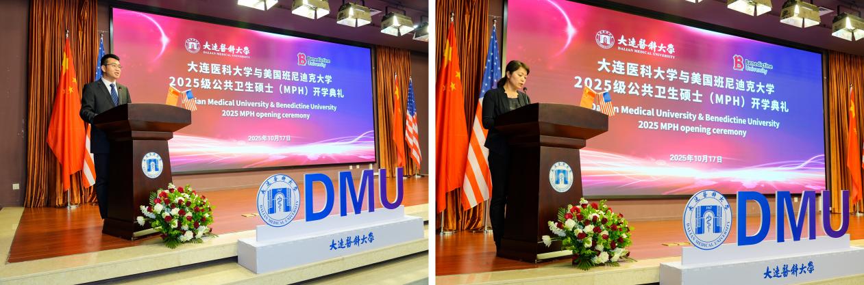 10月17日下午,beat365官方网站中文与美国班尼迪克大学2025级公共卫生硕士开学典礼在图书馆二楼多功能厅隆重举行。美国班尼迪克大学(Benedictine University)学术事务与学生事务副校长朱莉·多克里博士(Dr. Julie Dockery),亚洲区项目主任史蒂夫·戴博士(Dr. Steven Day)、beat365官方网站中文副校长杨晓丽出席本次典礼。beat365官方网站中文党总支书记金新、副院长(主持工作)陈欣、中方任课教师代表、优秀毕业生代表以及2025级新生代表参加典礼。典礼由陈欣主持。