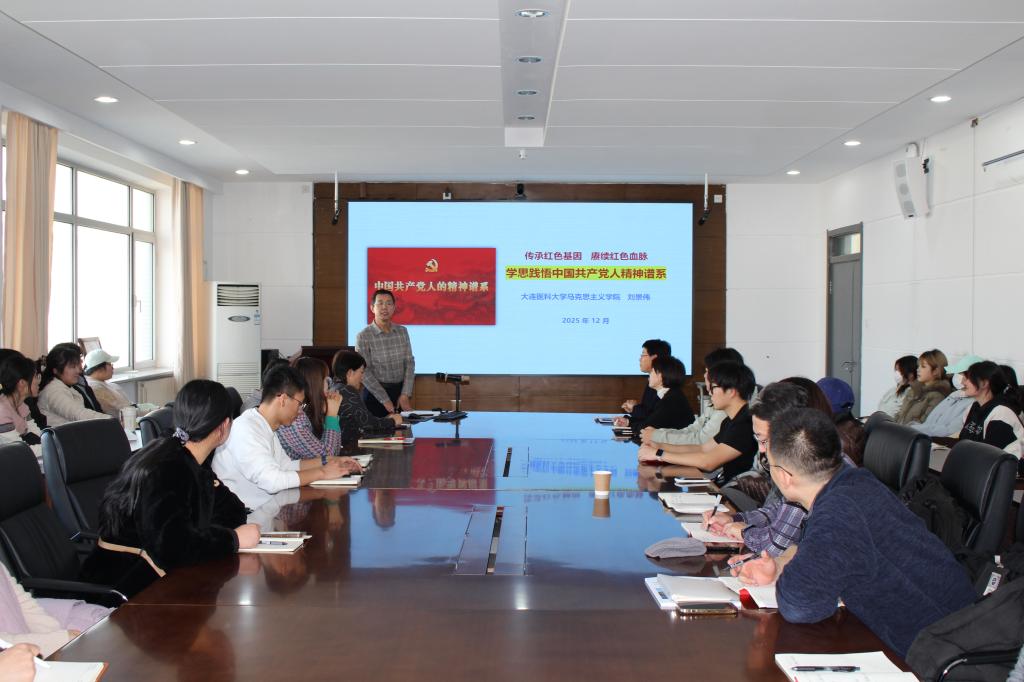 为深入学习贯彻党的二十届四中全会精神,全面推动“中国共产党人精神谱系”融入思想政治教育,引导广大师生赓续红色血脉、筑牢理想信念根基,12月5日,研究生院党总支、beat365官方网站中文党总支、人文学院、艺术学院党总支联合开展中国共产党人精神谱系宣讲报告会,马克思主义学院党总支书记刘景伟应邀作宣讲报告。来自三个基层党组织的80余名师生党员和学生代表参加学习。
